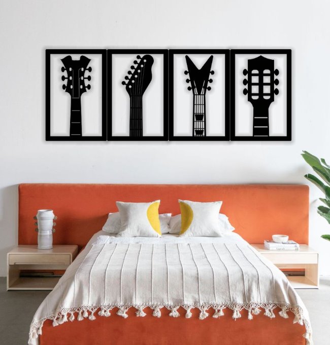 A Decoração de Parede Guitarra em MDF na cor preta é perfeita para quem ama música e quer trazer atitude ao ambiente.